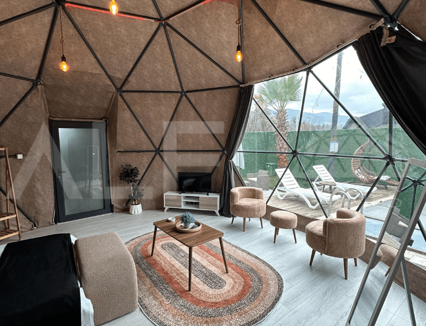 58 m² genişliği ve 3.3 metre yüksekliği ile 1+1 Dome, size konfor ve estetiği bir arada sunan mükemmel bir yaşam alanı sağlıyor. Doğayla iç içe, huzur dolu bir yaşam sürmek isteyenler için tasarlanan bu özel yapı, modern mimarisi ve fonksiyonelliği ile öne çıkıyor. Geniş iç mekanı sayesinde ferah bir yaşam alanı sunarken, doğanın tüm güzelliklerini evinizin konforunda yaşamanıza olanak tanıyor. Alf Dome ile yaşam alanınızı bir adım öteye taşıyın ve doğanın içinde lüksün tadını çıkarın.