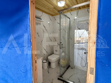 Das A7 ist eine Struktur mit einem Durchmesser von 7 Metern und umfasst eine Fläche von 40m². Dieses Dome bietet mit einer Höhe von 4 Metern vom Boden aus ein großzügiges und luftiges Innenraum. Es bietet komfortable Unterkünfte für 4-6 Personen. Es wurde mit speziell entwickelten Materialien für hohe Isolierung und Haltbarkeit gebaut. Das A7 Glamping-Dome ist eine ideale Option für Gäste, die sowohl ein naturnahes Erlebnis als auch modernen Komfort suchen.
